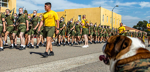U.S. Marines with Alpha Company, 1st Recruit Training Battalion, Motivational run in San Diego