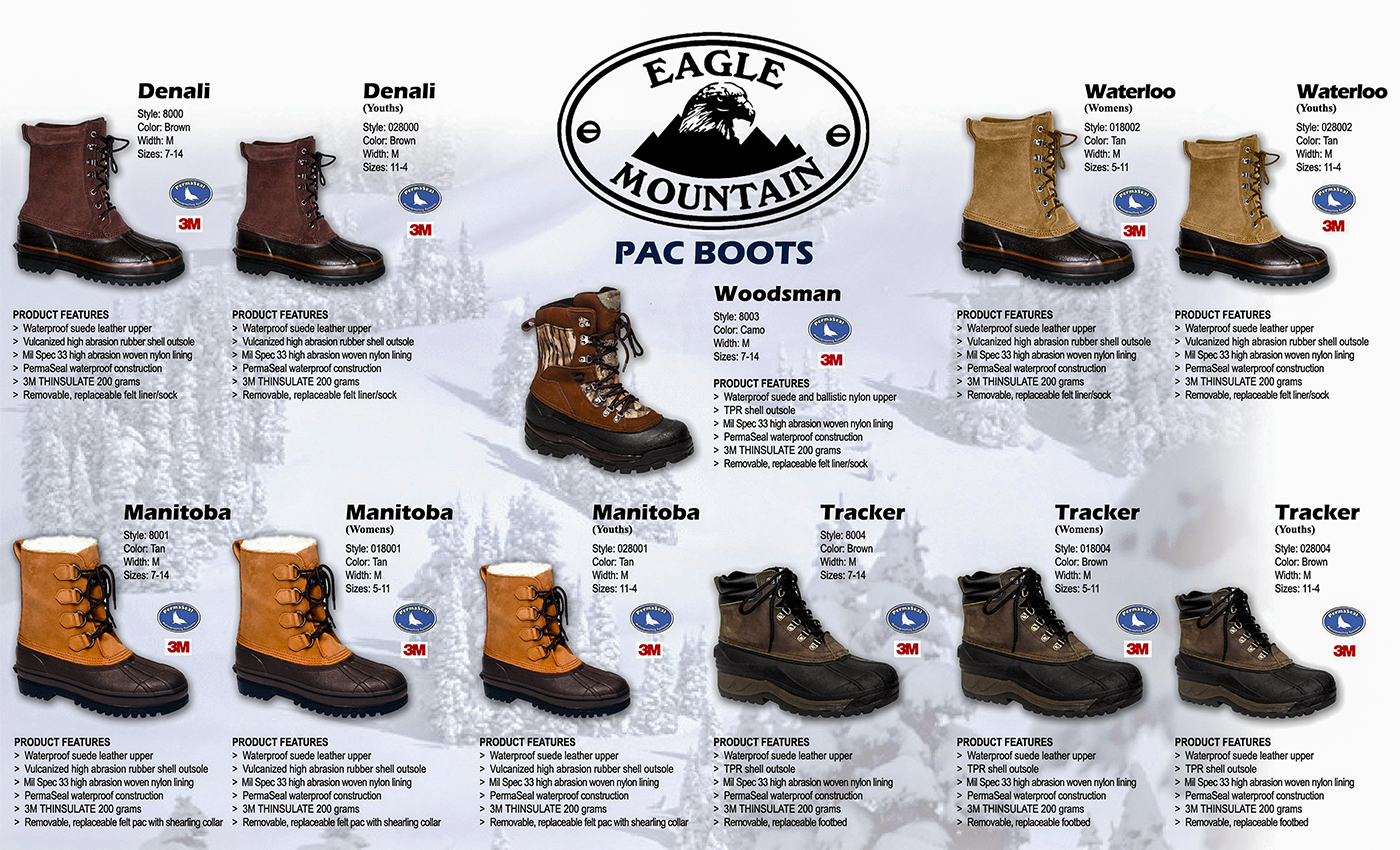 EAGLE MOUNTAIN® develops proprietary footwear designs for regional/national retailers and niche channel distributors to allow them to compete against larger suppliers and brands without the overhead and extensive infrastructure.