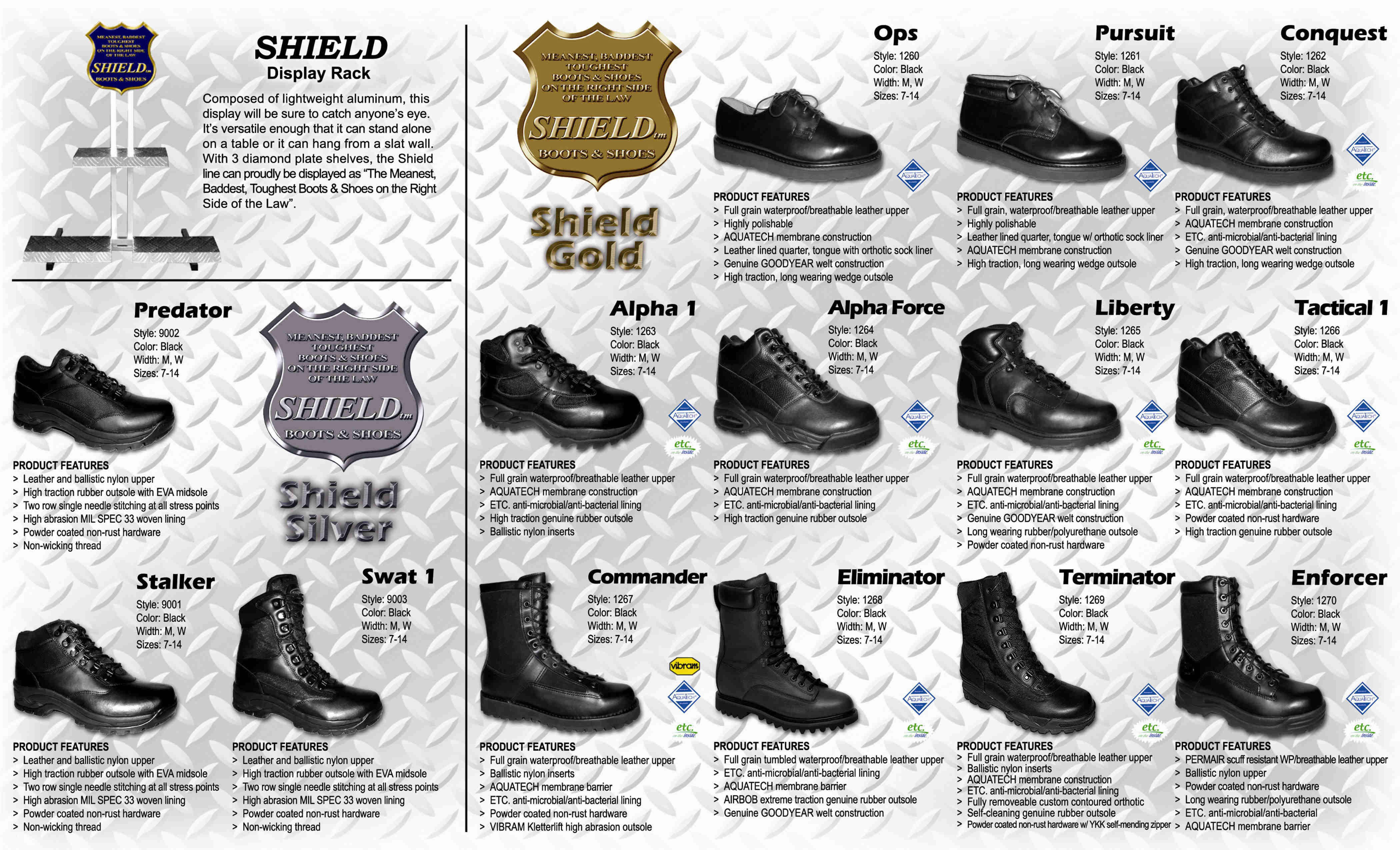 SHIELD® Boots & Shoes is famous for our innovative construction of footgear. Made of genuine leather and ballistic nylon uppers with breathable inserts/panels. Designed for comfort on the job, in any field.